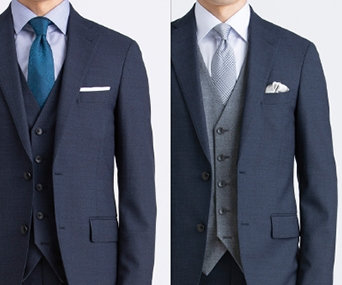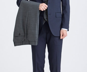 スーツと共生地で、表裏色違いの