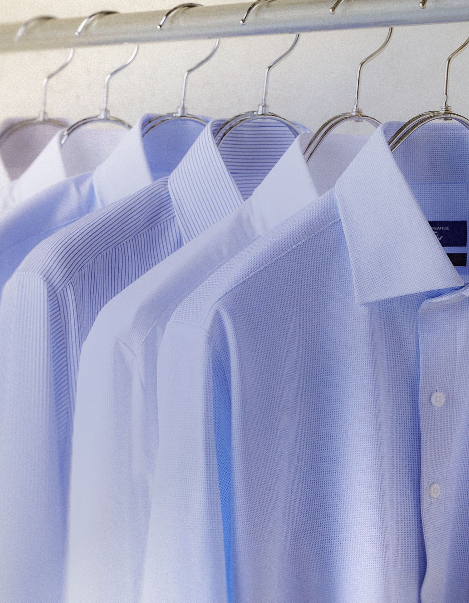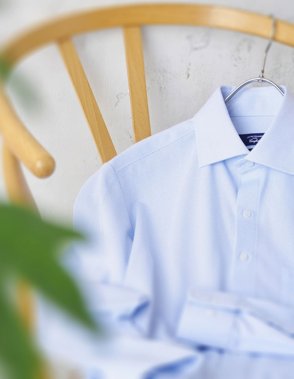 【WEB限定】【JOHN PEARSE comfort navy】ワイドカラーワイシャツ/ブルー×ドビー/ULTRA MOVE「ニット素材」「ノーアイロン」「ストレッチ」「高通気性」