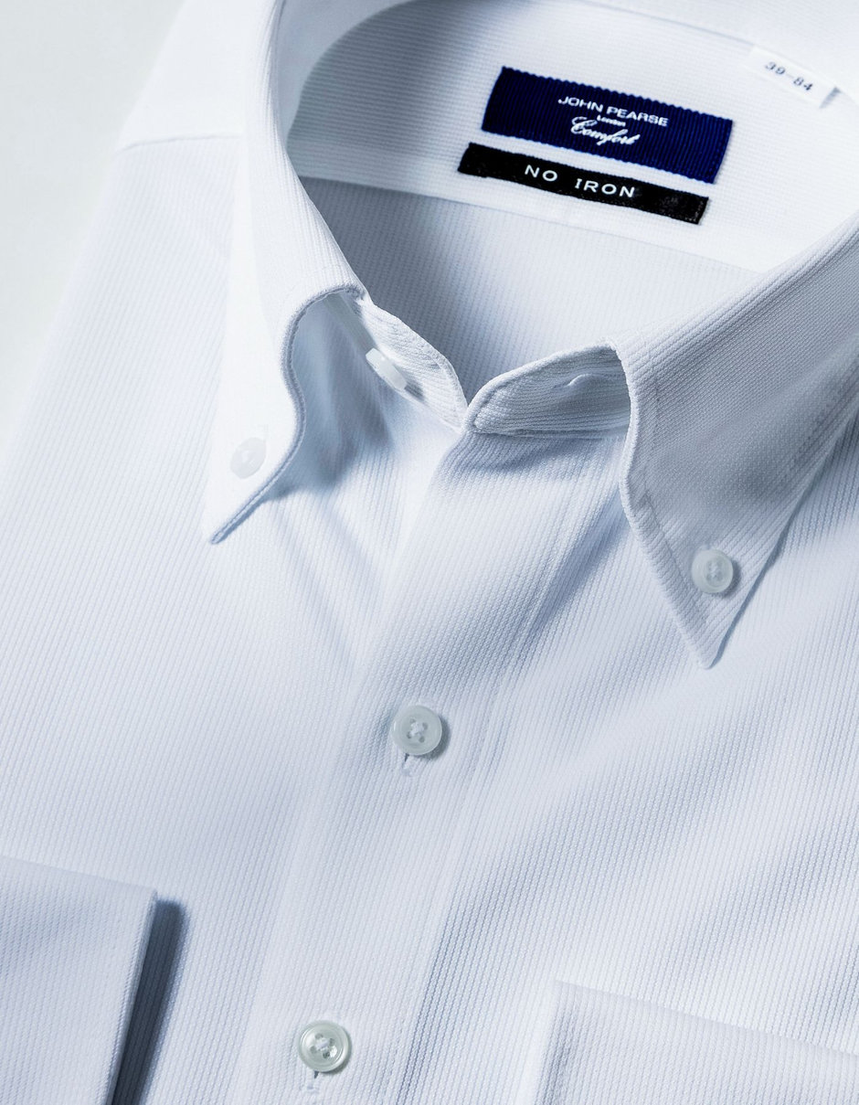 【WEB限定】【JOHN PEARSE comfort navy】ワイドカラーワイシャツ/ホワイト×ドビー/ULTRA MOVE「ニット素材」「ノーアイロン」「ストレッチ」「高通気性」