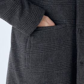原料調達、反毛、紡績、織布、整理全ての工程を日本国内でおこない、尾州産地でつくられたリサイクルウールRE:NEWOOLを使用。付属や釦・裏地にもサステナブルな素材を使用。