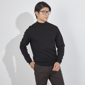 ウール100%を使用したモックネックセーター。抗ピル加工により毛玉ができにくく、柔らかでチクチク感の少ない上質な着心地です。家庭洗濯が可能で、ウール特有の高級感を保ちながらも日常使いしやすいイージーケアを実現。ネックポイントを少し高めに設計し、タートルほど重くならず首元をすっきりと見せ、ドレッシーな印象を演出します。タックイン・タックアウトどちらにも対応できる絶妙な着丈で、ビジネスから休日スタイルまで幅広く活躍する万能ニットです。