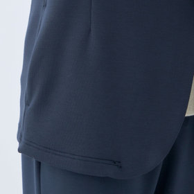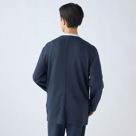 羽織り感覚で着用できる。スマート1釦カーディガンスタイル。サイドシームポケットでスッキリとしたミニマルシルエット。両脇にはデオドラントテープを施した抗菌消臭機能付き。2WAYストレッチによるリラックスした着心地