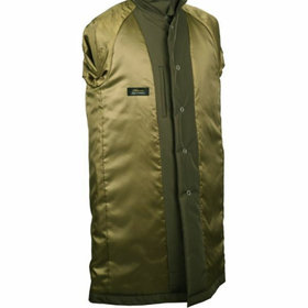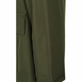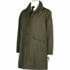 台襟なしのバルカラーにラグランショルダーでややゆとりあるシルエット。軽量なので羽織物感覚で着用できるビジカジモデル。テフロン加工とラミネーション張りで強化撥水性と防風性に優れています。フロントはアクセント効果も兼ねてメタルスナッパーを使用。中綿の一部にサステナブルの取り組みとして、新素材「KAPOK」を使用。KAPOK綿は羽毛並の優れた保温性があります。