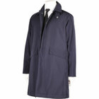 台襟なしのバルカラーにラグランショルダーでややゆとりあるシルエット。軽量なので羽織物感覚で着用できるビジカジモデル。テフロン加工とラミネーション張りで強化撥水性と防風性に優れています。フロントはアクセント効果も兼ねてメタルスナッパーを使用。中綿の一部にサステナブルの取り組みとして、新素材「KAPOK」を使用。KAPOK綿は羽毛並の優れた保温性があります。