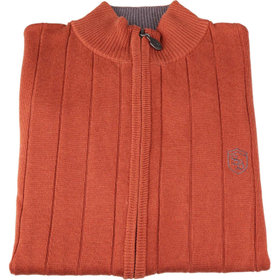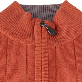 トップス・インナー使いでも上品なコーディネートができるスタンドカラーのダブルジップカーディガン。上下どちらでも開閉が可能で着こなしに変化を付けることができます。左胸にはロゴ刺繍でアクセントをプラスすることにより1枚でも様になります。