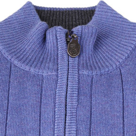 トップス・インナー使いでも上品なコーディネートができるスタンドカラーのダブルジップカーディガン。上下どちらでも開閉が可能で着こなしに変化を付けることができます。左胸にはロゴ刺繍でアクセントをプラスすることにより1枚でも様になります。
