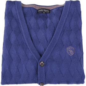 いつものコーディネートのアクセントになるアーガイル柄のニットベスト。あえてすっきりとしたデザインと、stanley blacker(スタンリーブラッカー)刻印釦を使用することで上品な装いに。適度にゆとりのある軽い着心地のニットベストです。