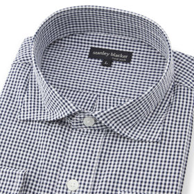 汎用性の高いカッタウェイカラーに、定番で使いやすいギンガムチェック柄を採用した一着。