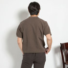 ガーター編み特有の凹凸感のある表面と、深みのあるカラーリングが相まって、一枚で着てもサマになる存在感のある仕上がり。シンプルながらも上品な印象を演出します。
