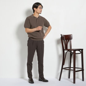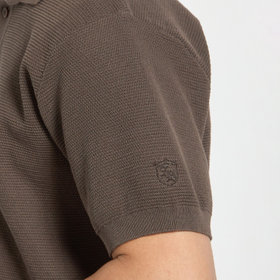 型崩れしにくいガーター編みで仕立てたニットポロ。しっかりとした編地により、美しいシルエットをキープしながら快適に着用いただけます。