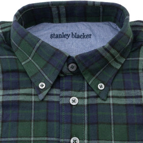 【stanley blacker】【長袖】ボタンカラーシャツ/グリーン&ネイビー×チェック