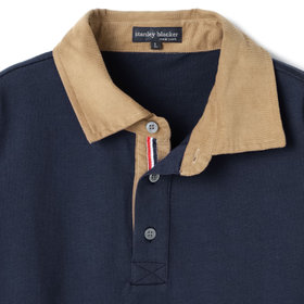 ■衿の切り返しにコーデュロイを張り合わせたカントリールックな首元を。