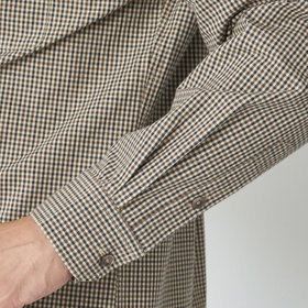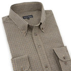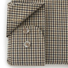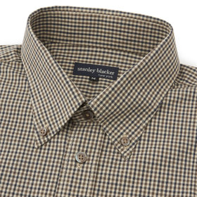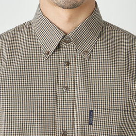 ①ノーネクタイでも衿が決まるよう第2ボタンの位置を調整。