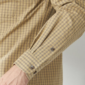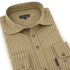①首回りがスッキリ見えカッタウェイよりカジュアルな印象な程よく衿先がラウンドしたシャツ。