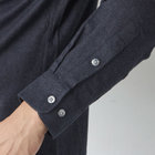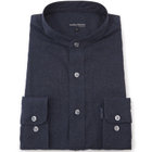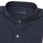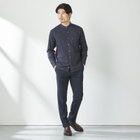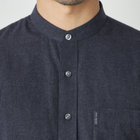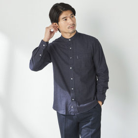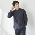 ①大人ファッションの新定番となりつつあるバンドカラーシャツ。