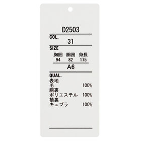 約8cmラペル・素材(表地)ウール100%/(裏地)ポリエステル100%/(袖裏)キュプラ100%・サイドベンツ・【着用シーズン:秋冬】