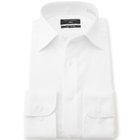 ワイドカラーワイシャツは、ノーネクタイやタイドアップなど幅広い着こなしを提案します。