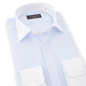 スッキリとしたシルエットに仕上がったワイシャツです。
