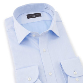 スッキリとしたシルエットに仕上がったワイシャツです。