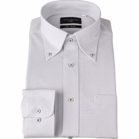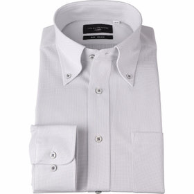 【JOHN PEARSE Black】【ノーアイロン】ボタンダウンドレスワイシャツ/グレー×ピンドットドビー/釦付糸:グレー/ULTRA MOVE/ニット素材