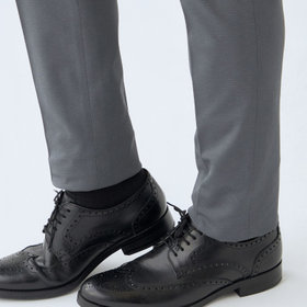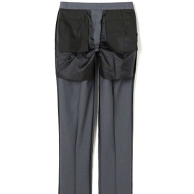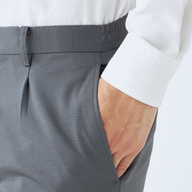 スーツやパンツのサイズ確認は、直立姿勢だけではなく、椅子に座った時の負荷。しゃがんだ時の負荷を考えたサイズ選びを必ずお願いします。ヒップ・太もも部分の生地にゆとりがない場合等の無理なサイズ選びは、体型や動きに関係なく生地や糸に負荷がかかり、「縫い目のほつれ」「生地の破れ」が起こります。また、両太もも同士が当たる場合や生地にゆとりがない場合、股ズレで生地が破れる可能性がございます。実店舗での商品確認・試着にて正しいサイズの購入をお勧めいたします。サイズが合わない事による「縫い目のほつれ」「生地の破れ」は「返品」「交換」「無償修理」はいたしかねます。また商品状態により修理が出来ない場合もございます。