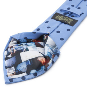 表面はビジネスシーンでも着用しやすい落ち着いた印象ながら、生地裏にはアニメの世界観を表現したプリント柄をあしらい、