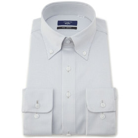 ライトグレーのハウンドトゥース柄にノータイでも襟元が崩れないボタンダウン。ビジネスシーンでも上品な印象を演出します。