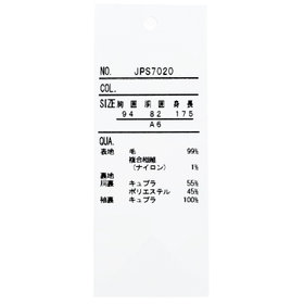 素材(表)ウール99%/複合繊維(ナイロン)1%・素材(裏)キュプラ55%/ポリエステル45%(袖裏)キュプラ100%・【着用シーズン:秋冬】