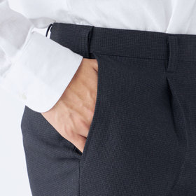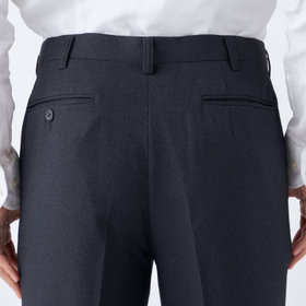 スーツやパンツのサイズ確認は、直立姿勢だけではなく、椅子に座った時の負荷。しゃがんだ時の負荷を考えたサイズ選びを必ずお願いします。ヒップ・太もも部分の生地にゆとりがない場合等の無理なサイズ選びは、体型や動きに関係なく生地や糸に負荷がかかり、「縫い目のほつれ」「生地の破れ」が起こります。また、両太もも同士が当たる場合や生地にゆとりがない場合、股ズレで生地が破れる可能性がございます。実店舗での商品確認・試着にて正しいサイズの購入をお勧めいたします。サイズが合わない事による「縫い目のほつれ」「生地の破れ」は「返品」「交換」「無償修理」はいたしかねます。また商品状態により修理が出来ない場合もございます。