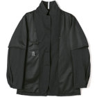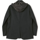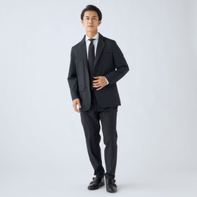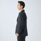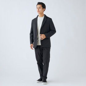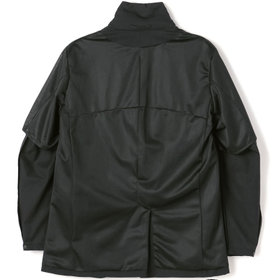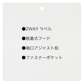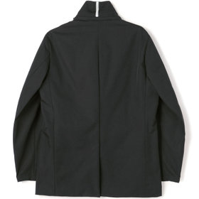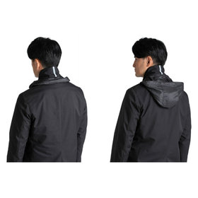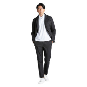 ストレッチ性と耐久性に優れたアクティブ素材を使用。ストレッチ性はタテ、ヨコに伸びる2WAYストレッチでストレスフリーな着用感。耐久性は耐摩耗試験で10万回をクリア(通常のスーツは2万回程度)とポリエステル素材の弱点である引っ掛けキズもスナッキング試験を4.5級、ピリング試験も5級+とハードな動きにも耐えうる素材です。また撥水加工を施しているために雨の日でも安心です。ジャケットの特徴は①衿裏の反射板と隠しフード・・・上衿裏には夜間でも認知して頂ける反射板テープを採用し、カラークロス部分には取り外し可能なフードも搭載②2WAYラペル・・・作業時や自転車運転時の防寒として衿をスタンドカラーにして着用可能 ③袖口アジャスト釦・・・作業時や自転車運転時の防寒として袖口も、アジャスト釦で風の侵入を防ぐ④胸ポケット・内ポケットファスナー付き・・・作業やゴルフ場に行く際、貴重品の所在は気になるところ。ファスナー付きポケットが多いので安心