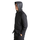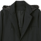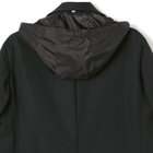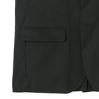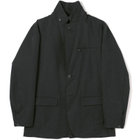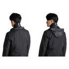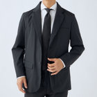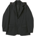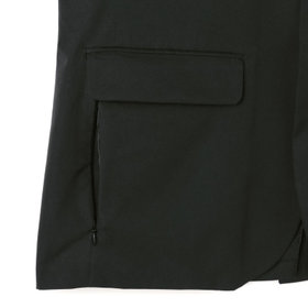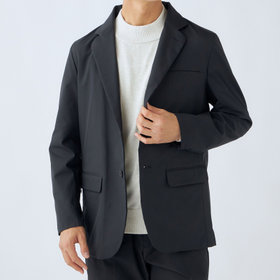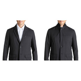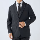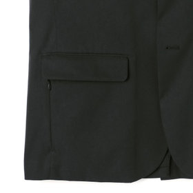 ストレッチ性と耐久性に優れたアクティブ素材を使用。ストレッチ性はタテ、ヨコに伸びる2WAYストレッチでストレスフリーな着用感。耐久性は耐摩耗試験で10万回をクリア(通常のスーツは2万回程度)とポリエステル素材の弱点である引っ掛けキズもスナッキング試験を4.5級、ピリング試験も5級+とハードな動きにも耐えうる素材です。また撥水加工を施しているために雨の日でも安心です。ジャケットの特徴は①衿裏の反射板と隠しフード・・・上衿裏には夜間でも認知して頂ける反射板テープを採用し、カラークロス部分には取り外し可能なフードも搭載②2WAYラペル・・・作業時や自転車運転時の防寒として衿をスタンドカラーにして着用可能 ③袖口アジャスト釦・・・作業時や自転車運転時の防寒として袖口も、アジャスト釦で風の侵入を防ぐ④胸ポケット・内ポケットファスナー付き・・・作業やゴルフ場に行く際、貴重品の所在は気になるところ。ファスナー付きポケットが多いので安心