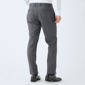 スーツやパンツのサイズ確認は、直立姿勢だけではなく、椅子に座った時の負荷。しゃがんだ時の負荷を考えたサイズ選びを必ずお願いします。ヒップ・太もも部分の生地にゆとりがない場合等の無理なサイズ選びは、体型や動きに関係なく生地や糸に負荷がかかり、「縫い目のほつれ」「生地の破れ」が起こります。また、両太もも同士が当たる場合や生地にゆとりがない場合、股ズレで生地が破れる可能性がございます。実店舗での商品確認・試着にて正しいサイズの購入をお勧めいたします。サイズが合わない事による「縫い目のほつれ」「生地の破れ」は「返品」「交換」「無償修理」はいたしかねます。また商品状態により修理が出来ない場合もございます。