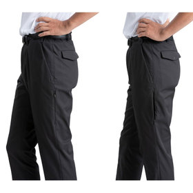 ストレッチ性と耐久性に優れたアクティブ素材を使用。ストレッチ性はタテ、ヨコに伸びる2WAYストレッチでストレスフリーな着用感。耐久性は耐摩耗試験で10万回をクリア(通常のスーツは2万回程度)とポリエステル素材の弱点である引っ掛けキズもスナッキング試験を4.5級、ピリング試験も5級+とハードな動きにも耐えうる素材です。また撥水加工を施しているために雨の日でも安心です。パンツ特徴は①トランスフォームポケット・・・作業時に工具を収納、ゴルフ時にスコアボードやボールも収納可能②ファスナー付きティーポケット・・・パンツ脇ポケット横にファスナー付きポケット。ゴルフのティー専用ストッパーも搭載③サイドファスナーポケット・・・パンツ左側にはシルエットに響きにくい位置にファスナーポケット搭載④裾口アジャスト釦・・・パンツの裾口には自転車運転時や、長靴を履いて作業する際に便利な釦を採用<br><br>別売りで共生地ジャケット<font color="blue"><u>KJ2200-27</u></font>・共生地ベスト<font color="blue"><u>KV2200-27</u></font>もございますのでスーツとしても着用できます。<br><br><table style="width: 100%; text-align: center; table-layout: fixed; line-height: 2.3;"><caption style="caption-side: top; text-align: center;">KP2200-27_Q</caption><thead style="background-color: #e2e2e2;"><tr style="border-bottom: 1px solid #e2e2e2;"><th>サイズ</th><th>ウエスト</th><th>股上</th><th>渡り巾</th><th>裾巾</th><th>股下</th></tr></thead><tbody><tr style="border-bottom: 1px solid #e2e2e2;"><th>S</th><td>74</td><td>24.5</td><td>32</td><td>16.5</td><td>71</td></tr><tr style="border-bottom: 1px solid #e2e2e2;"><th>M</th><td>80</td><td>25.5</td><td>33</td><td>17.0</td><td>72</td></tr><tr style="border-bottom: 1px solid #e2e2e2;"><th>L</th><td>86</td><td>26.5</td><td>34</td><td>17.5</td><td>73</td></tr><tr style="border-bottom: 1px solid #e2e2e2;"><th>LL</th><td>92</td><td>26.5</td><td>35</td><td>18.0</td><td>74</td></tr><tr style="border-bottom: 1px solid #e2e2e2;"><th>3L</th><td>98</td><td>27.5</td><td>36</td><td>18.5</td><td>75</td></tr></tbody></table><p>単位:cm</p><p>※サイズスペック表の数値は平均値(目安)であり商品により誤差がございます。同じモデル(型番・型紙)でも同商品・同品番でない場合、サイズは異なります。数値だけではサイズが合わない場合がございます。実店舗での試着・購入をおすすめいたします。また、洗濯・乾燥機・クリーニング後は生地の伸び縮みによるサイズの変化がございます。<br>※商品の下げ札・タグに記載の数値は目安としてのヌードサイズ(体の寸法)です。製品の出来上がり寸法と異なる場合がございますが、誤表記ではございません。<br>※店舗での試着が出来ない場合は、お直しをせずに購入お願いいたします。</p><br><br><br>【パンツのお手入れ方法】<br>(1)型崩れを防ぐ為に、着用後はポケットの中身を全部出し、クリース(折り目)を合わせてハンガーに掛けましょう。(2)軽くブラッシングを行い、シワのある部分には軽く霧吹きで水分を与えると次回着用時のお手入れが簡単になります。※使用後のお風呂場にハンガーに掛けて置くこともシワ回復には効果的です。(3)連続着用はパンツの型崩れや寿命を短くします。綺麗でお洒落に長い年数着用する為にも、次の着用まで、中2~3日は空けましょう。※連続着用は毛玉・股ズレ・ニオイ等の原因にもなります。(4)汚れた場合はすぐにクリーニング屋または専門業者に相談しましょう。※衣類の気付かないシミが虫食い等の原因になる場合もありますのでシーズンオフには出来るだけ早くクリーニングに出しましょう。しかしクリーニングの出しすぎは生地を傷める場合がありますので注意しましょう。(5)着用前に気になるシワやパンツのクリース(折り目)部分にスチームでアイロンを掛けましょう。※必ずあて布をしてアイロンを掛けましょう。また、シワなどはハンドスチーマーがあるとお手入れが簡単です。<br></p><br>【サイズについて】<br>スーツやパンツのサイズ確認は、直立姿勢だけではなく、椅子に座った時の負荷。しゃがんだ時の負荷を考えたサイズ選びを必ずお願いします。ヒップ・太もも部分の生地にゆとりがない場合等の無理なサイズ選びは、体型や動きに関係なく生地や糸に負荷がかかり、「縫い目のほつれ」「生地の破れ」が起こります。また、両太もも同士が当たる場合や生地にゆとりがない場合、股ズレで生地が破れる可能性がございます。実店舗での商品確認・試着にて正しいサイズの購入をお勧めいたします。サイズが合わない事による「縫い目のほつれ」「生地の破れ」は「返品」「交換」「無償修理」はいたしかねます。また商品状態により修理が出来ない場合もございます。<br><br>【お届けについて】<br>品質管理には十分注意いたしておりますが、商品の特性上、「配送中にできるシワ」「運送時の天候や外気よる湿度等の変化によるシワ」「梱包時にできるシワ」は必ず発生いたします。シワによる返品や交換はいたしかねます。<br><br>【商品について】<br>商品の素材や特性により、「使用上の注意事項」「保管方法の注