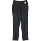 スーツやパンツのサイズ確認は、直立姿勢だけではなく、椅子に座った時の負荷。しゃがんだ時の負荷を考えたサイズ選びを必ずお願いします。ヒップ・太もも部分の生地にゆとりがない場合等の無理なサイズ選びは、体型や動きに関係なく生地や糸に負荷がかかり、「縫い目のほつれ」「生地の破れ」が起こります。また、両太もも同士が当たる場合や生地にゆとりがない場合、股ズレで生地が破れる可能性がございます。実店舗での商品確認・試着にて正しいサイズの購入をお勧めいたします。サイズが合わない事による「縫い目のほつれ」「生地の破れ」は「返品」「交換」「無償修理」はいたしかねます。また商品状態により修理が出来ない場合もございます。