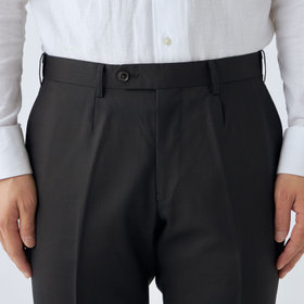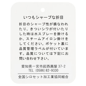 スーツやパンツのサイズ確認は、直立姿勢だけではなく、椅子に座った時の負荷。しゃがんだ時の負荷を考えたサイズ選びを必ずお願いします。ヒップ・太もも部分の生地にゆとりがない場合等の無理なサイズ選びは、体型や動きに関係なく生地や糸に負荷がかかり、「縫い目のほつれ」「生地の破れ」が起こります。また、両太もも同士が当たる場合や生地にゆとりがない場合、股ズレで生地が破れる可能性がございます。実店舗での商品確認・試着にて正しいサイズの購入をお勧めいたします。サイズが合わない事による「縫い目のほつれ」「生地の破れ」は「返品」「交換」「無償修理」はいたしかねます。また商品状態により修理が出来ない場合もございます。