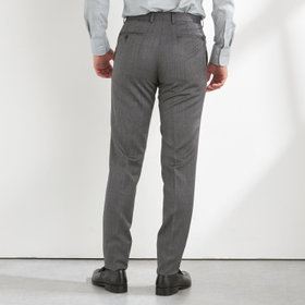 スーツやパンツのサイズ確認は、直立姿勢だけではなく、椅子に座った時の負荷。しゃがんだ時の負荷を考えたサイズ選びを必ずお願いします。ヒップ・太もも部分の生地にゆとりがない場合等の無理なサイズ選びは、体型や動きに関係なく生地や糸に負荷がかかり、「縫い目のほつれ」「生地の破れ」が起こります。また、両太もも同士が当たる場合や生地にゆとりがない場合、股ズレで生地が破れる可能性がございます。実店舗での商品確認・試着にて正しいサイズの購入をお勧めいたします。サイズが合わない事による「縫い目のほつれ」「生地の破れ」は「返品」「交換」「無償修理」はいたしかねます。また商品状態により修理が出来ない場合もございます。