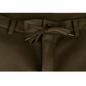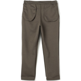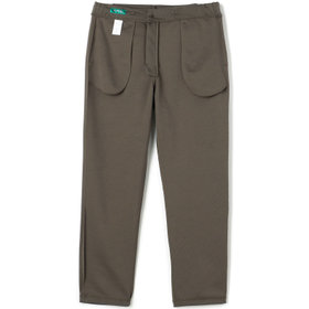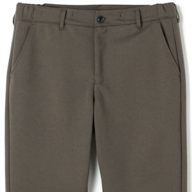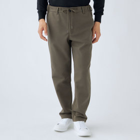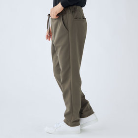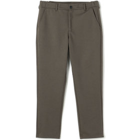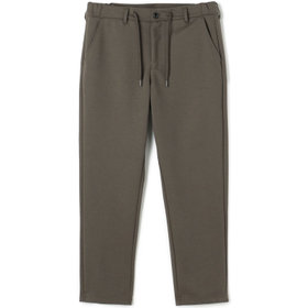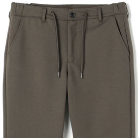 裾口に向かって緩やかに細くなっている、ゆるテーパード。2WAYドローコードとお腹周りを圧迫しないウエストゴムシャーリング仕様。股部分にはデオドラントテープを施した抗菌消臭機能付き。ポリエステル80%、コットン20%の表と裏を合わせて編まれたダブルジャージのポンチ素材を使用。2WAYストレッチでありながらハリのある生地感が特徴的で適度な厚みにより膝抜けなどがしにくく、ご家庭の洗濯機でも安心して洗うことができます。