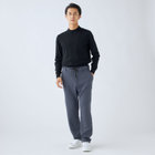 裾口に向かって緩やかに細くなっている、ゆるテーパード。2WAYドローコードとお腹周りを圧迫しないウエストゴムシャーリング仕様。股部分にはデオドラントテープを施した抗菌消臭機能付き。2WAYストレッチによるリラックスした着心地