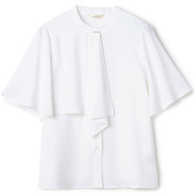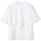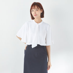 洗練された印象のアシンメトリーなボウタイケープと、
