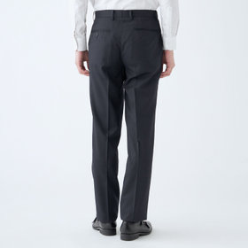 スーツやパンツのサイズ確認は、直立姿勢だけではなく、椅子に座った時の負荷。しゃがんだ時の負荷を考えたサイズ選びを必ずお願いします。ヒップ・太もも部分の生地にゆとりがない場合等の無理なサイズ選びは、体型や動きに関係なく生地や糸に負荷がかかり、「縫い目のほつれ」「生地の破れ」が起こります。また、両太もも同士が当たる場合や生地にゆとりがない場合、股ズレで生地が破れる可能性がございます。実店舗での商品確認・試着にて正しいサイズの購入をお勧めいたします。サイズが合わない事による「縫い目のほつれ」「生地の破れ」は「返品」「交換」「無償修理」はいたしかねます。また商品状態により修理が出来ない場合もございます。
