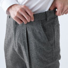 (1)型崩れを防ぐ為に、着用後はポケットの中身を全部出し、クリース(折り目)を合わせてハンガーに掛けましょう。(2)軽くブラッシングを行い、シワのある部分には軽く霧吹きで水分を与えると次回着用時のお手入れが簡単になります。※使用後のお風呂場にハンガーに掛けて置くこともシワ回復には効果的です。(3)連続着用はパンツの型崩れや寿命を短くします。綺麗でお洒落に長い年数着用する為にも、次の着用まで、中2~3日は空けましょう。※連続着用は毛玉・股ズレ・ニオイ等の原因にもなります。(4)汚れた場合はすぐにクリーニング屋または専門業者に相談しましょう。※衣類の気付かないシミが虫食い等の原因になる場合もありますのでシーズンオフには出来るだけ早くクリーニングに出しましょう。しかしクリーニングの出しすぎは生地を傷める場合がありますので注意しましょう。(5)着用前に気になるシワやパンツのクリース(折り目)部分にスチームでアイロンを掛けましょう。※必ずあて布をしてアイロンを掛けましょう。また、シワなどはハンドスチーマーがあるとお手入れが簡単です。