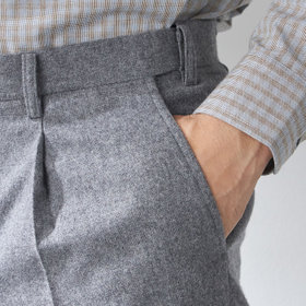 ②霜降り調の表情が特徴の高い保温性と軽やかさを併せ持った素材。