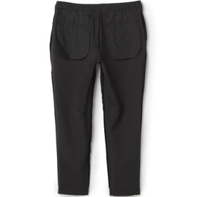 表地は撥水加工を施したポリエステル素材なので雨が降っても安心して着用可能。また、ストレッチポリエステルなので、動きやすく快適な着用感。当然ウォッシャブル可能で常に清潔感をキープできます。ウエストの内側にはウエストインドローコードがあり、ベルトいらずで着用できます。