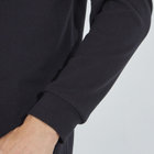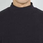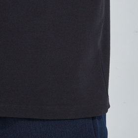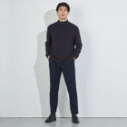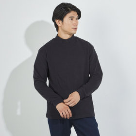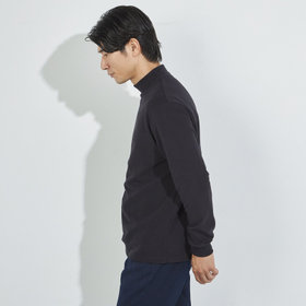 ピーチ加工を施したポリエステル素材で、フリースのような柔らかな暖かみを持つモックネックトップス。襟はタートルとモックの中間の高さ(約5cm)で、首元にほどよい抜け感を与え、イージーライクな着こなしを演出します。袖口はカフ切り替え仕様、裾はストレート仕立てでスポーティかつすっきりとした印象に。ウォッシャブル、ノーアイロン、防シワといった機能性も備え、デイリーからリラックススタイルまで幅広く活躍する一着です。