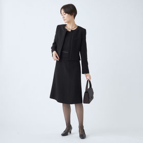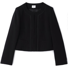 すっきりとしたノーカラージャケットは、