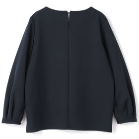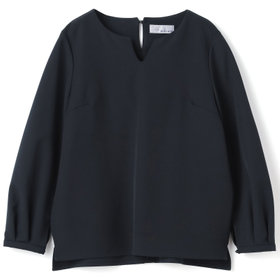胸元が広すぎないキーネックブラウスは、フロントカッティングと袖口のタックがポイント。ジャケットを羽織らずに、パンツ、スカートとアンサンブルで着用する事で、幅広く着まわせます。