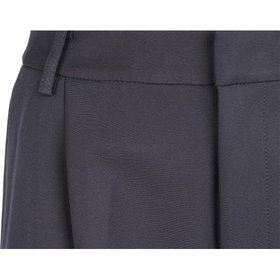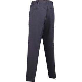 フロントにタックの入ったサイドシャーリング仕様のテーパードパンツはベーシックなデザインでON/OFF問わず着まわしが可能。ウエストの履きこみをやや深めにし、腰回りにゆとりを持たせています。