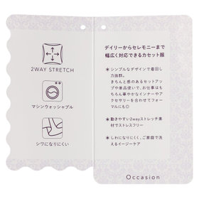 素材(表地):ポリエステル53%/レーヨン23%/ナイロン18%/ポリウレタン6%・(裏地):ポリエステル100%・【着用シーズン:オールシーズン】
