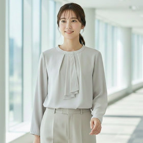 【english girl by J.P./9分袖】スカーフ風ボウタイブラウス/グレー