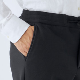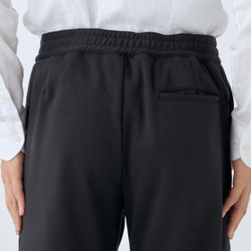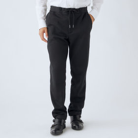 裾口に向かって緩やかに細くなっている、ゆるテーパード。2WAYドローコードとお腹周りを圧迫しないウエストゴムシャーリング仕様。つかい勝手の良い深めのサイドポケットポリエステル100%のフリース起毛素材を使用。起毛素材は繊維の間に空気層ができる為、優れた保温性。また使用するポリエステルは軽さと強度があるストレッチ素材。空気層を含み通気性があるので、速乾性が高くドライな肌触り、ご家庭の洗濯機で安心して洗えノーアイロンで着用可能です。